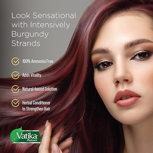 Achieve vibrant, healthy-looking hair with Vatika Henna Hair Color Burgundy – a natural way to color and care for your hair!